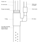 2Glue the foot valves. The foot valve is the mechanism that allows water to be drawn in but does not allow water to escape back out. There are two foot valves used in this well. The first one is at the bottom of the six inch PVC pipe and the second one is at the bottom of the 4 inch PVC. These mechanisms will allow the water to be drawn into the 6 inch pipe on the upstroke of the well, and it well push water through the 4 inch pipe on the down stroke. The down stroke will be the stroke in which the water is pushed out of the well.