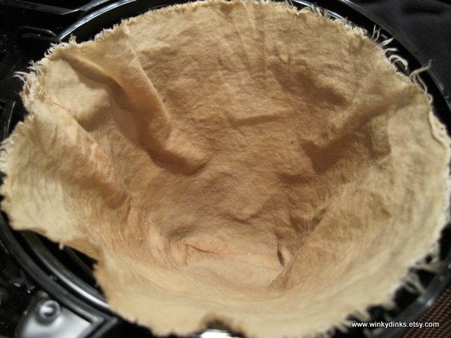 - Basket shaped filters are even easier, just cut out a circle of muslin as large as your paper filter smashed flat! The folds happen naturally as you lay it into the coffee maker, or you can sew in triangular darts to permanently make it stand up.