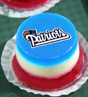 4Place 10 shot glasses on a cookie sheet. Fill each shot glass 1/3 full of white gelatin.