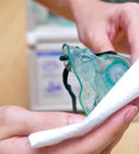 7Add bleach. Bleaching certain parts of your jeans will make them look extra distressed, and add an interesting visual dimension to them. Dampen a sponge with bleach and rub it around the outer edges of holes. Put some bleach on the bristles of an old toothbrush, then use a finger to pull the bristles back so that the bleach splatters the denim. Additionally, you can add a bit of bleach to an eye dropper to add small dots over your jeans.[3]