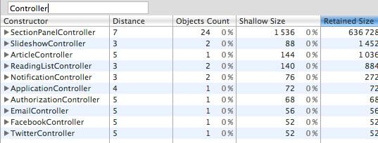 Q: There's a lot of data in the constructor and retained views. Where should I start digging into to discover if I have a leak?