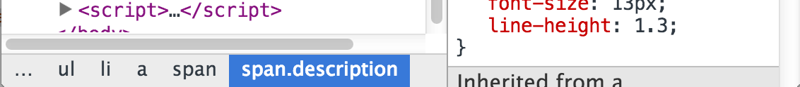 spanmatches an HTML<span>element. - Inherited styles include any inheritable style rules that match the selected element's ancestors.