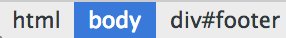 As you navigate, the Elements panel shows a breadcrumb trail in the bottom bar: